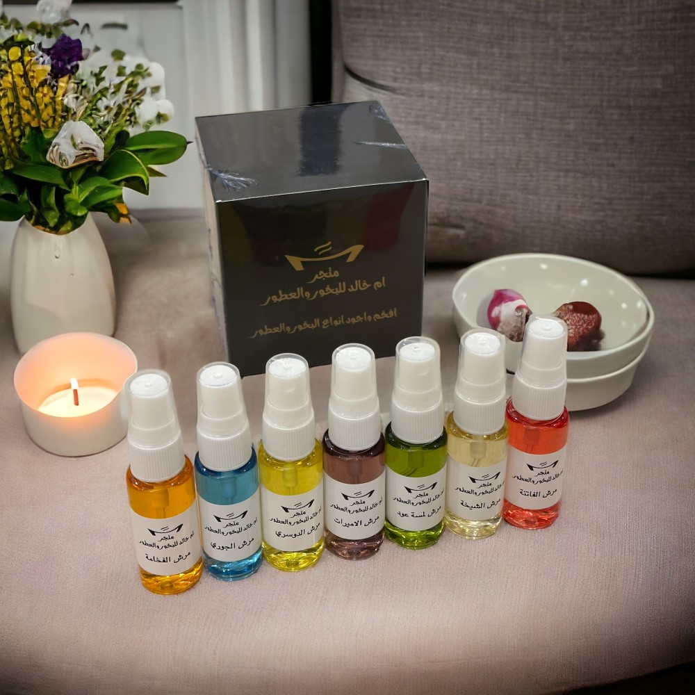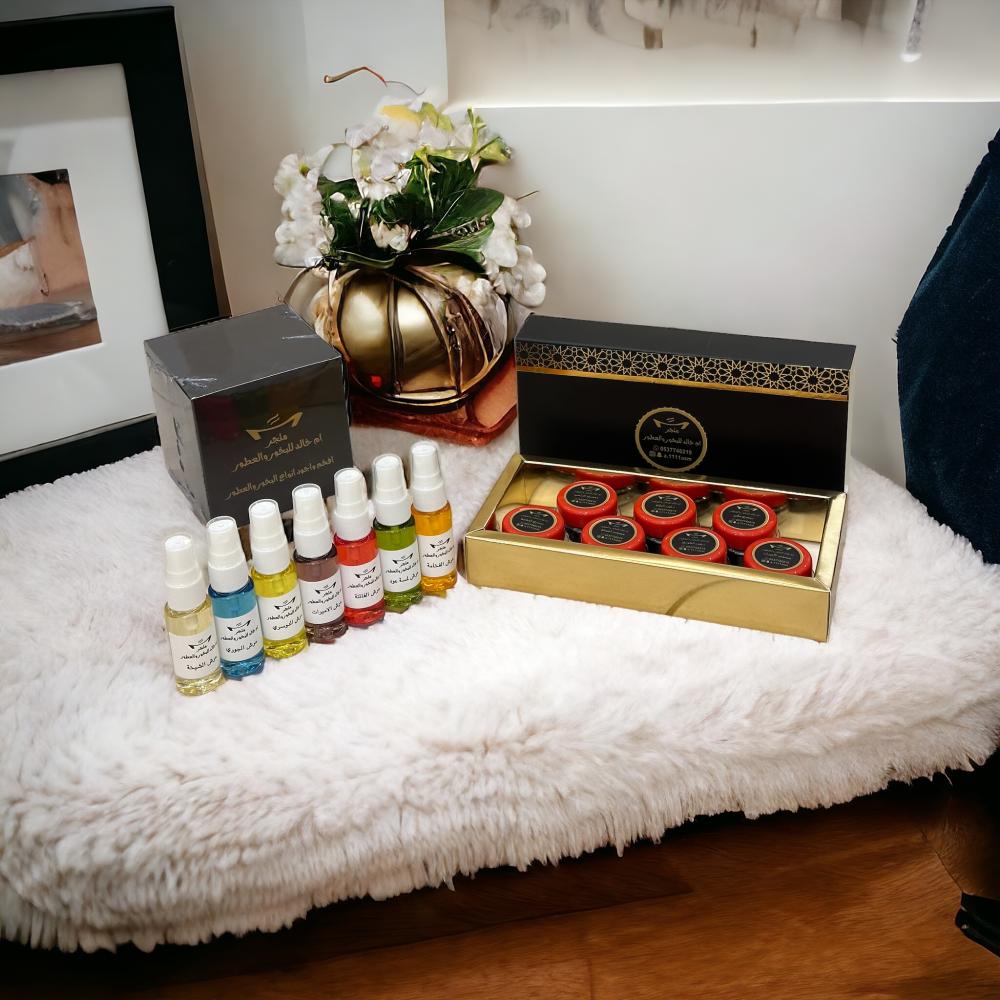 بكج العينات يحتوي على 17 نوع من اجود وافخم انواع البخور والمرشات بثبات وفوحان يدوم لعدة ايام